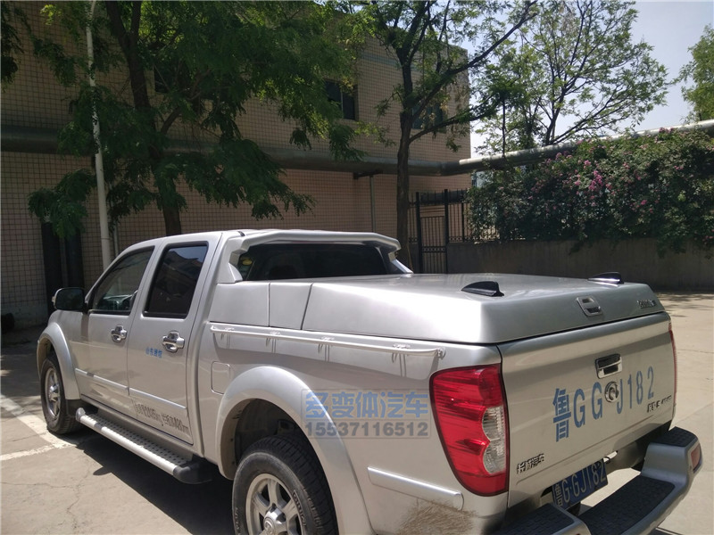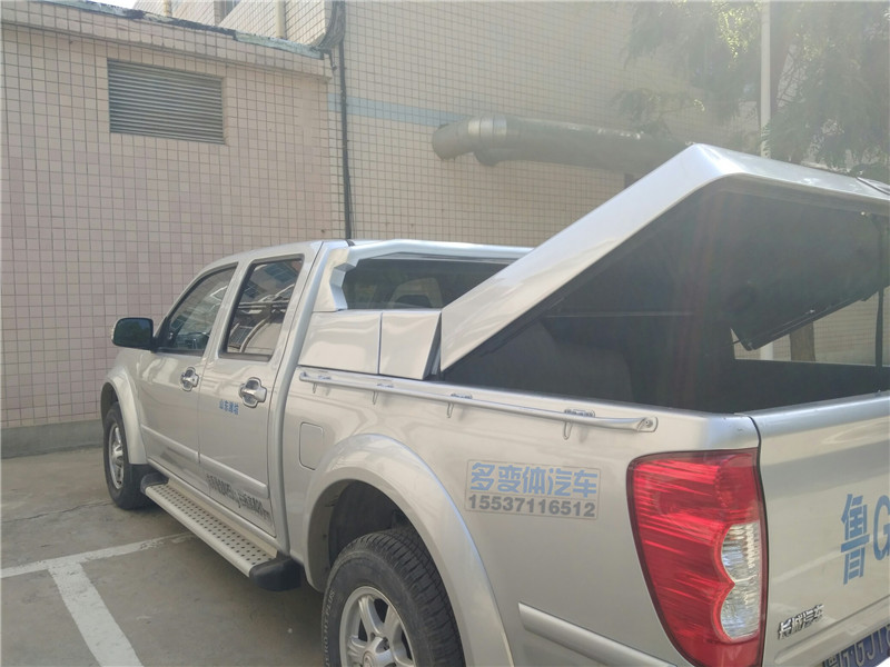 長城風駿5皮卡改裝鯊魚王多體變汽車智能皮卡后箱蓋,采用金屬冷板材質,日產電泳工藝防銹、防塵防水、防異響,聯鎖工藝,一體鎖止,防盜保證安全,后蓋支持原車鑰匙遙控開啟,其它后蓋沒有功能,六個變化動作,載貨空間更大,產品研發專利,全球銷售,海外出口。
